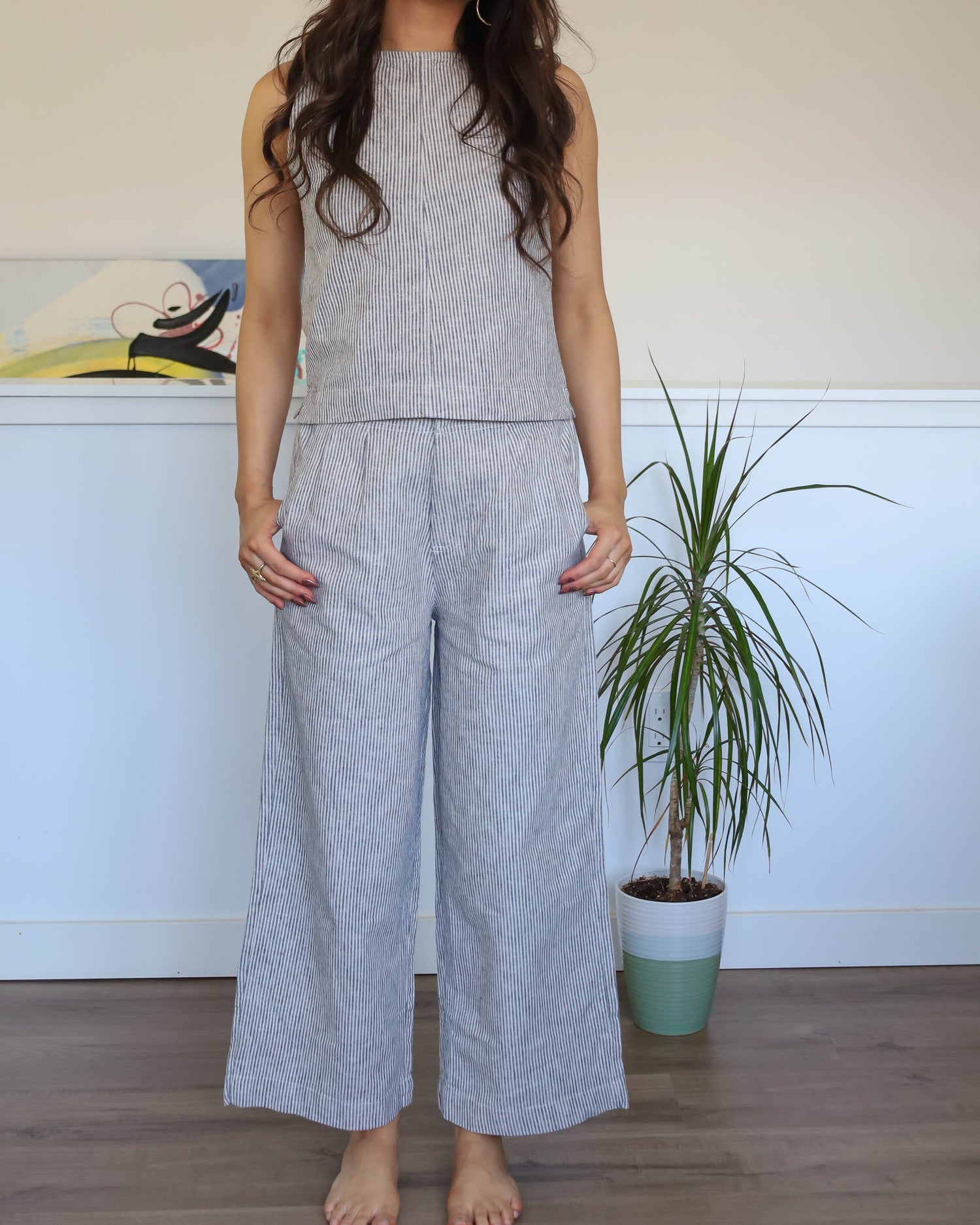 Give the gift of timeless linen this holiday season. The Maya Linen Pant and Top are now available in an exclusive bundle—buy one, get the second 50% off.