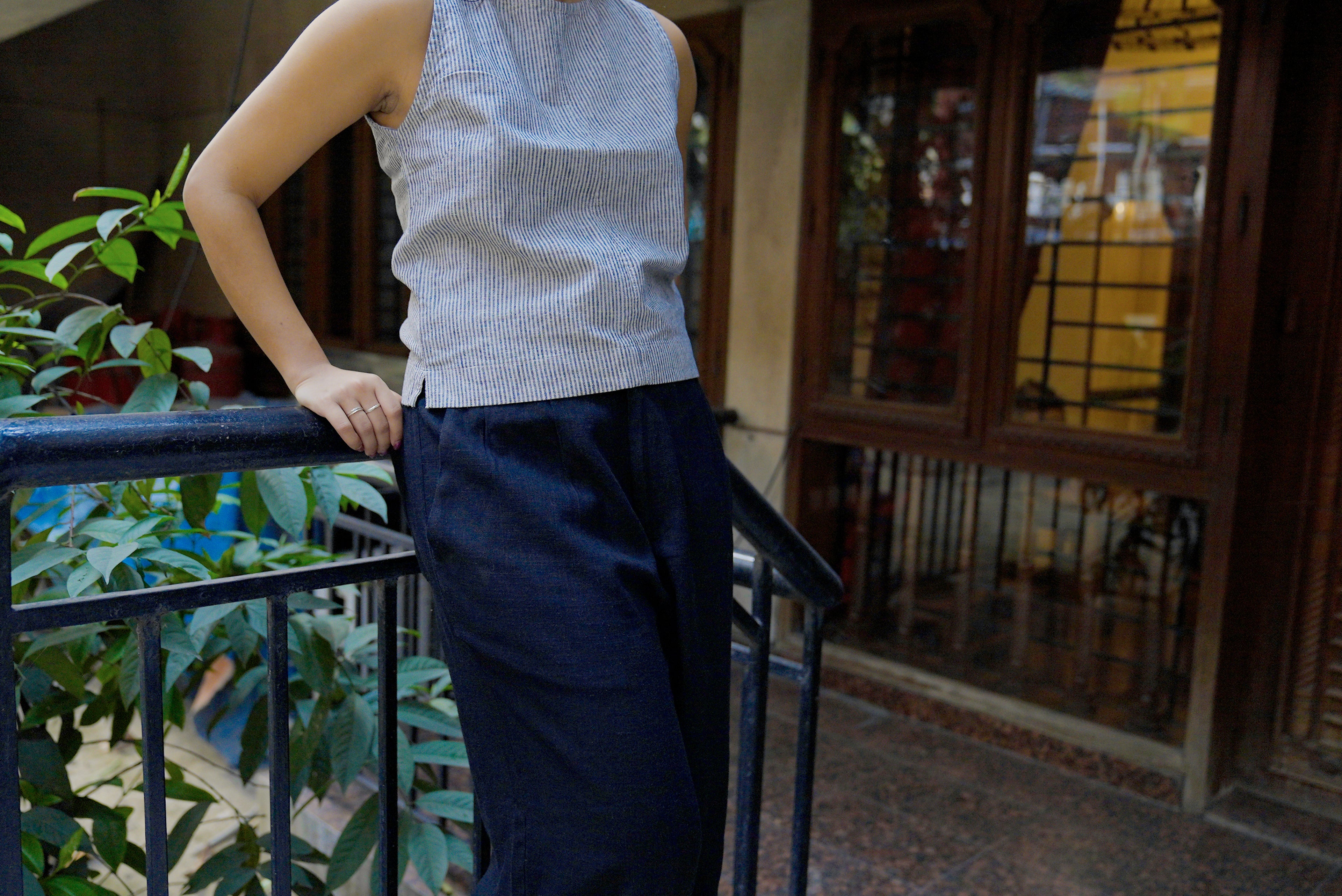 I decided to buy the white linen pants and I love them. The fit is perfect and so comfortable. I like having an elastic waist but the nice thing about it is the elastic is just in the back and the front has a nice flat pleat detail. Another thing I like is the width of the pants. They are wide but not super wide. And who doesn’t love pockets! (which are nice and deep I might add)