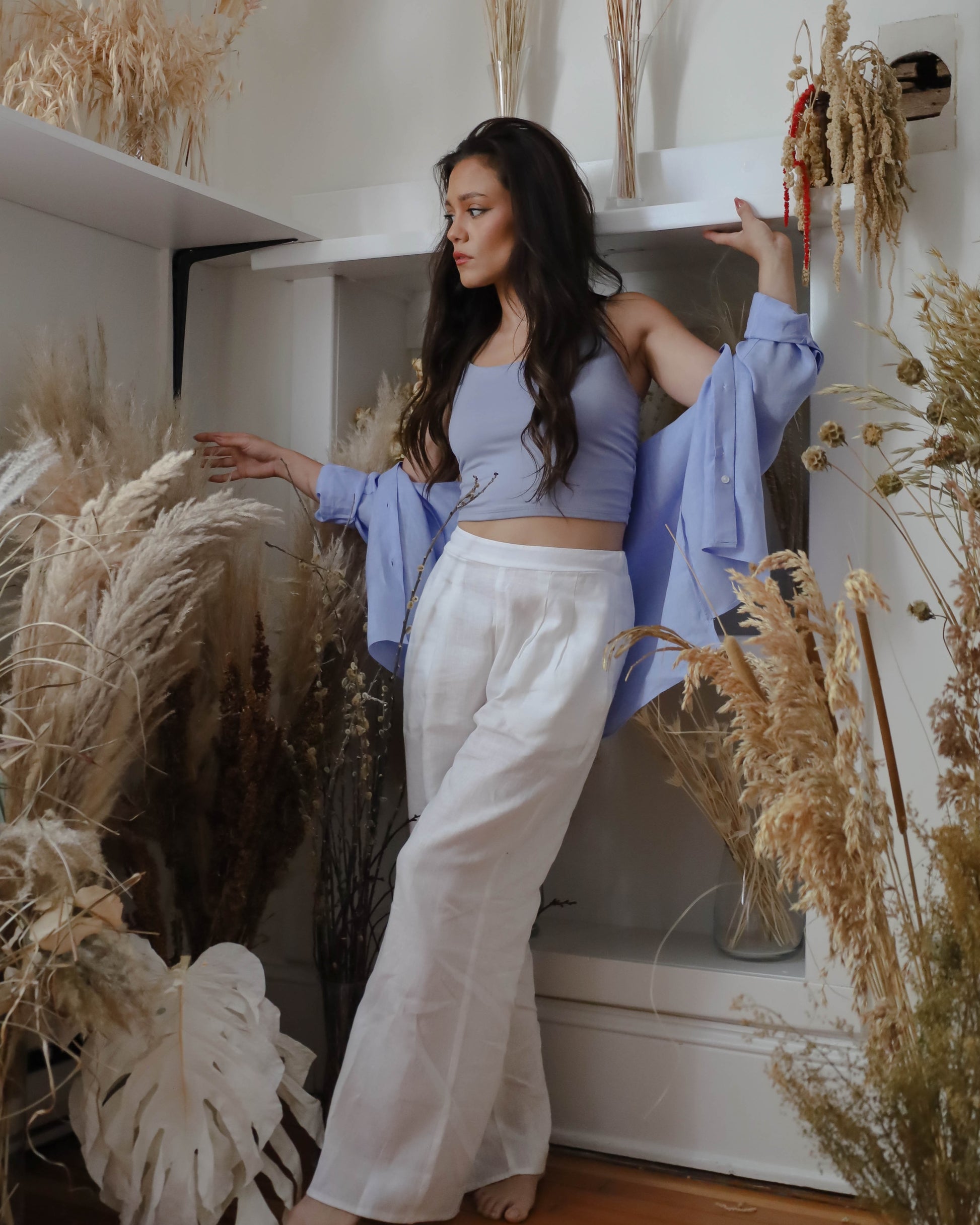Inspired by my personal desire for sustainable and timeless wardrobe essentials that never go out of style, these lightweight pants are suitable for work, home, and daily activities - perfect for the beach too!