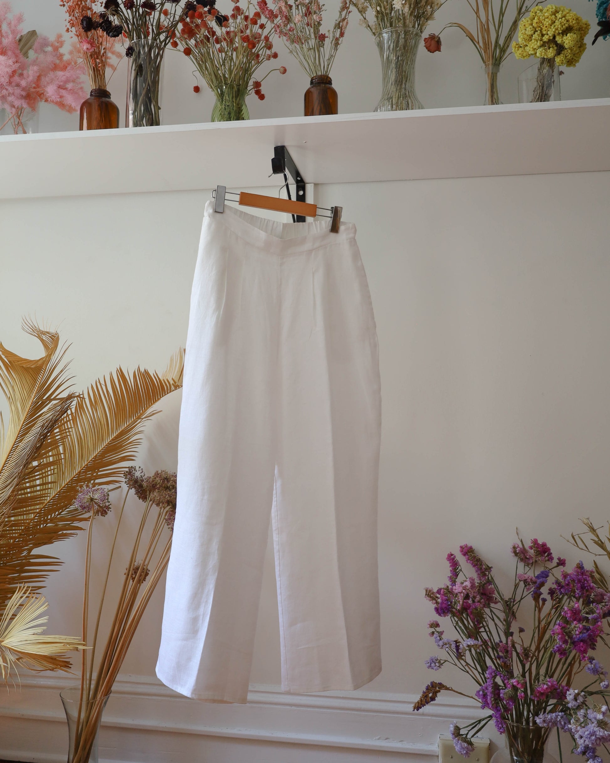 Our linen pants are eco-friendly and crafted from high-quality deadstock fabric. As a natural fiber, linen is eco-friendly and biodegradable, while being absorbent and breathable. Using deadstock fabric ensures you get the highest quality at a reasonable price while helping reduce waste in the global fashion industry. Produced in very small batches, these pants ensure you have a garment that's both unique and timeless.