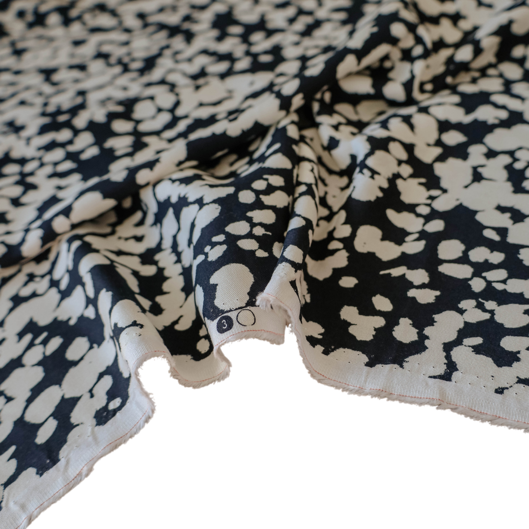 Lightweight and Airy Rayon Fabric - Black and White Abstract Print