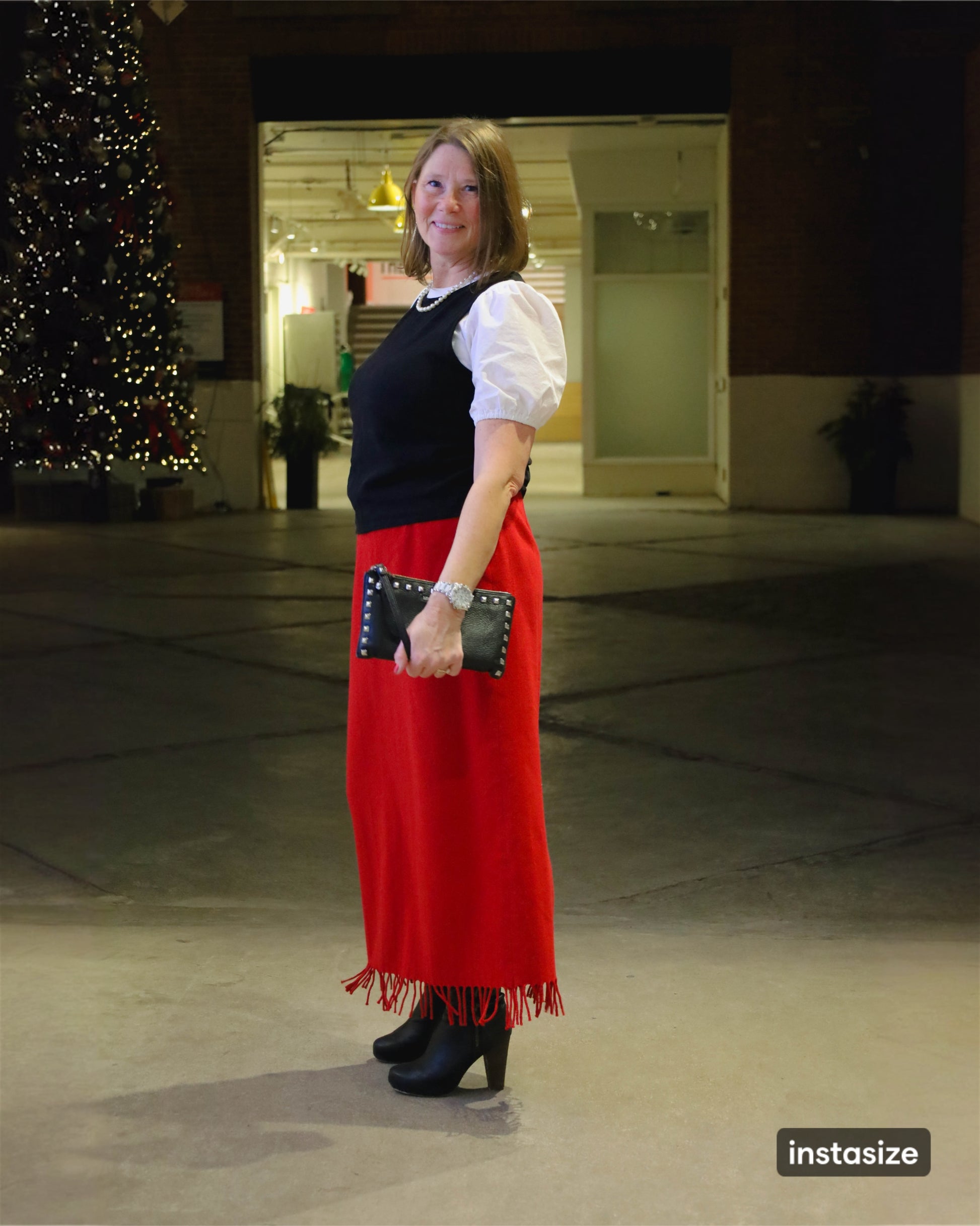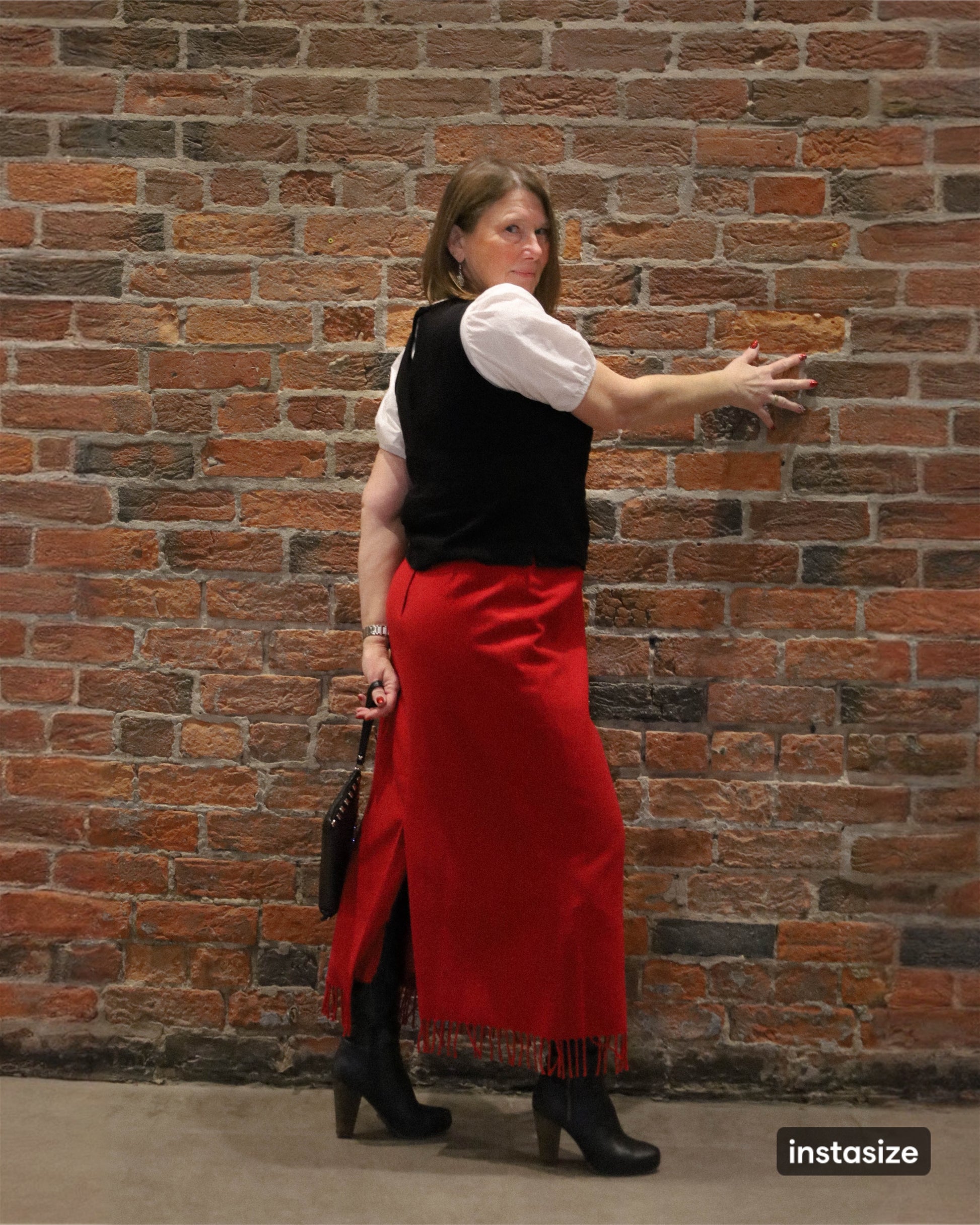 Vintage Red Wool Blend Maxi Skirt with tassel hem