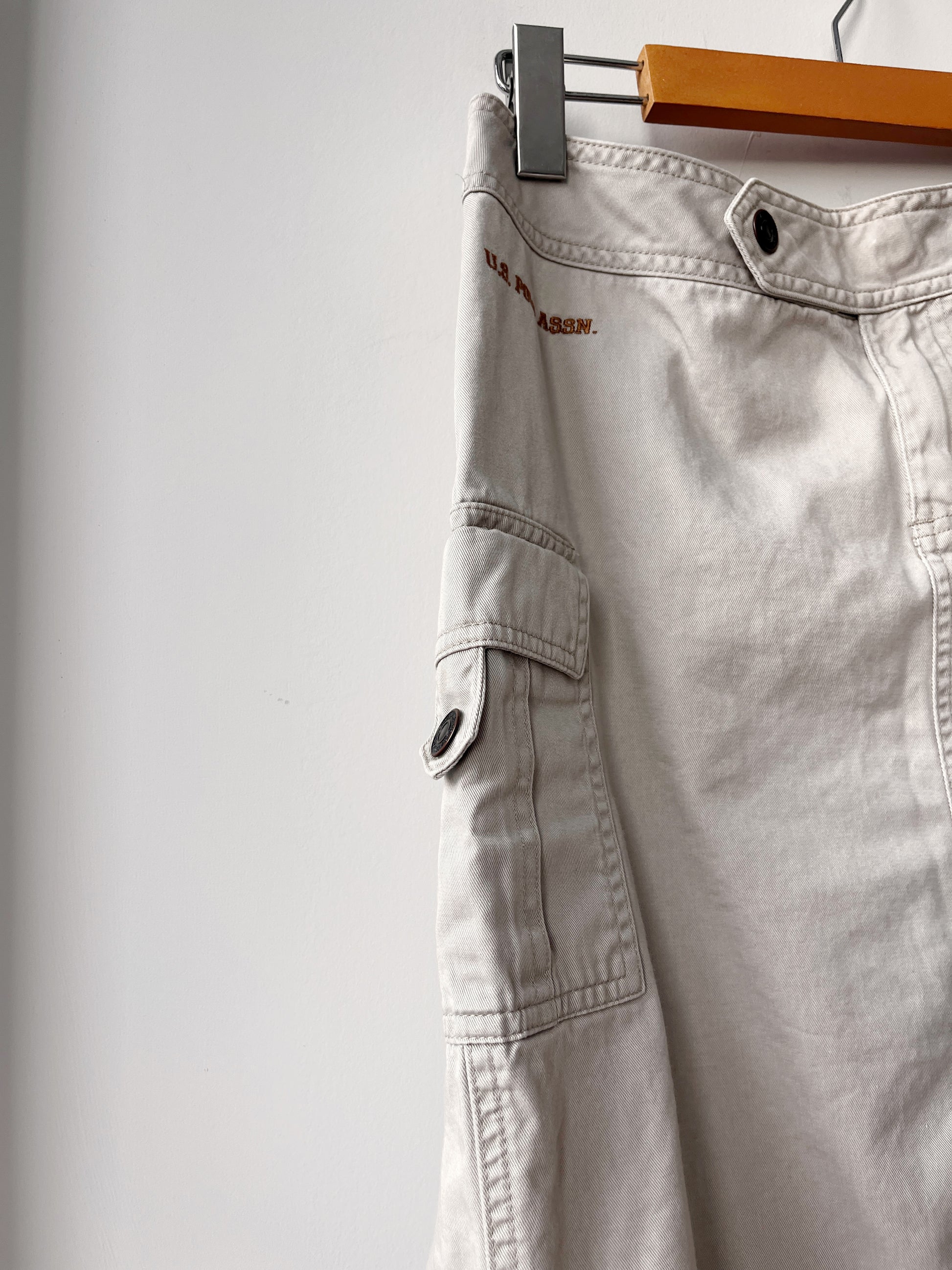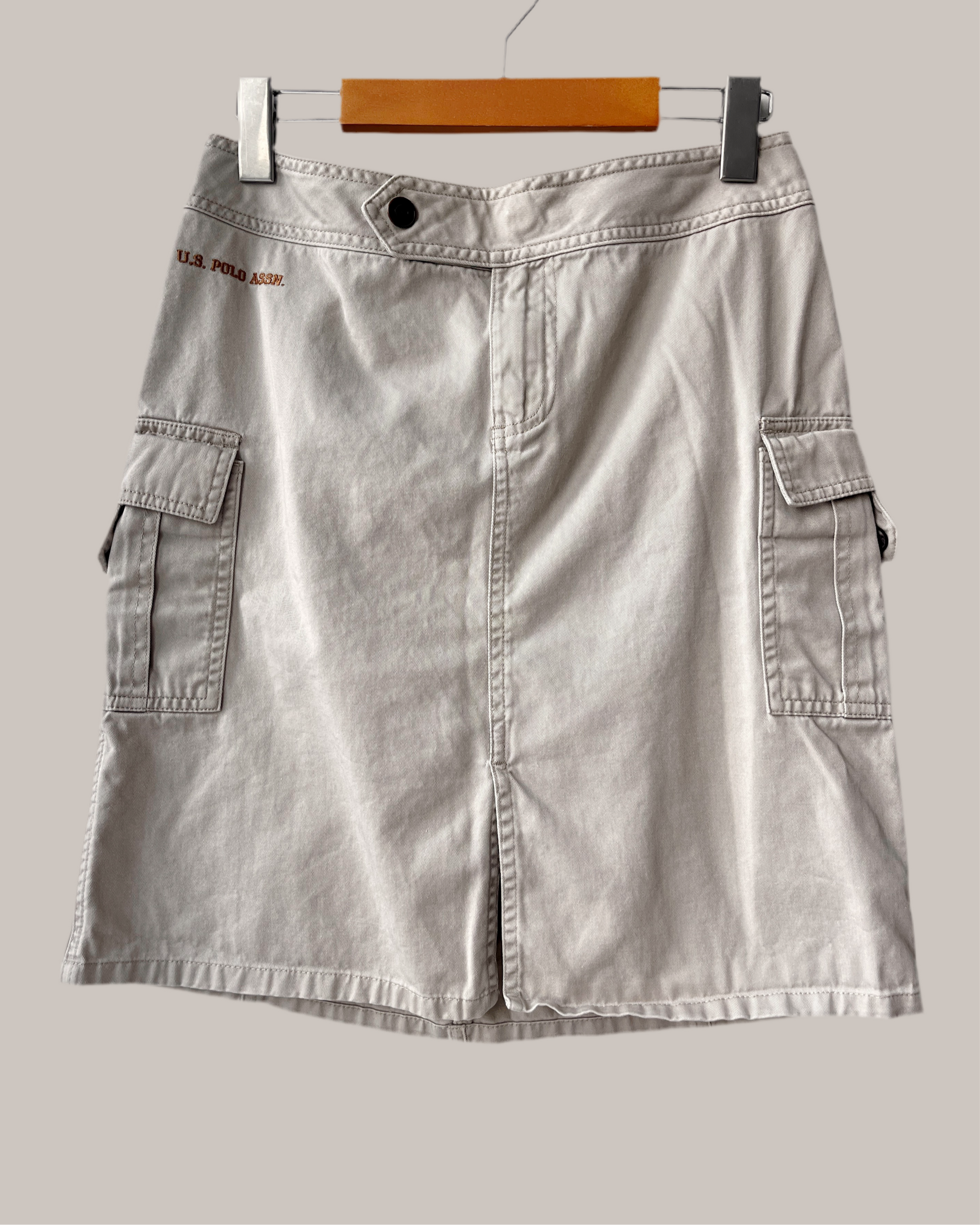 Vintage cargo mini skirt made from 100% cotton woven fabric that is both lightweight and comfortable. It has side cargo pockets and front slit for a a slimming comfortable fit.